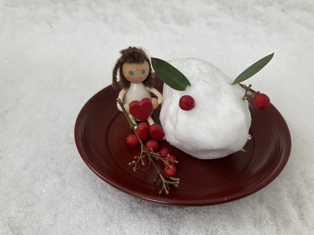 雪兎が出来るほどに積もっています。止む様子がありません。