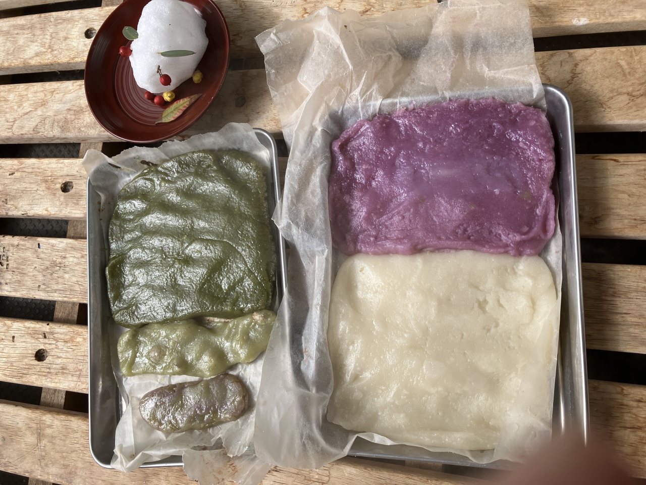 料理に集中。力作の切り山椒、約10年越しの思いが叶ってやっと自分で作ることが出来ました。「切り山椒」は甲州に春を呼ぶ和菓子で縁起物。山椒の香りで邪気を払い、子孫繁栄を願います。