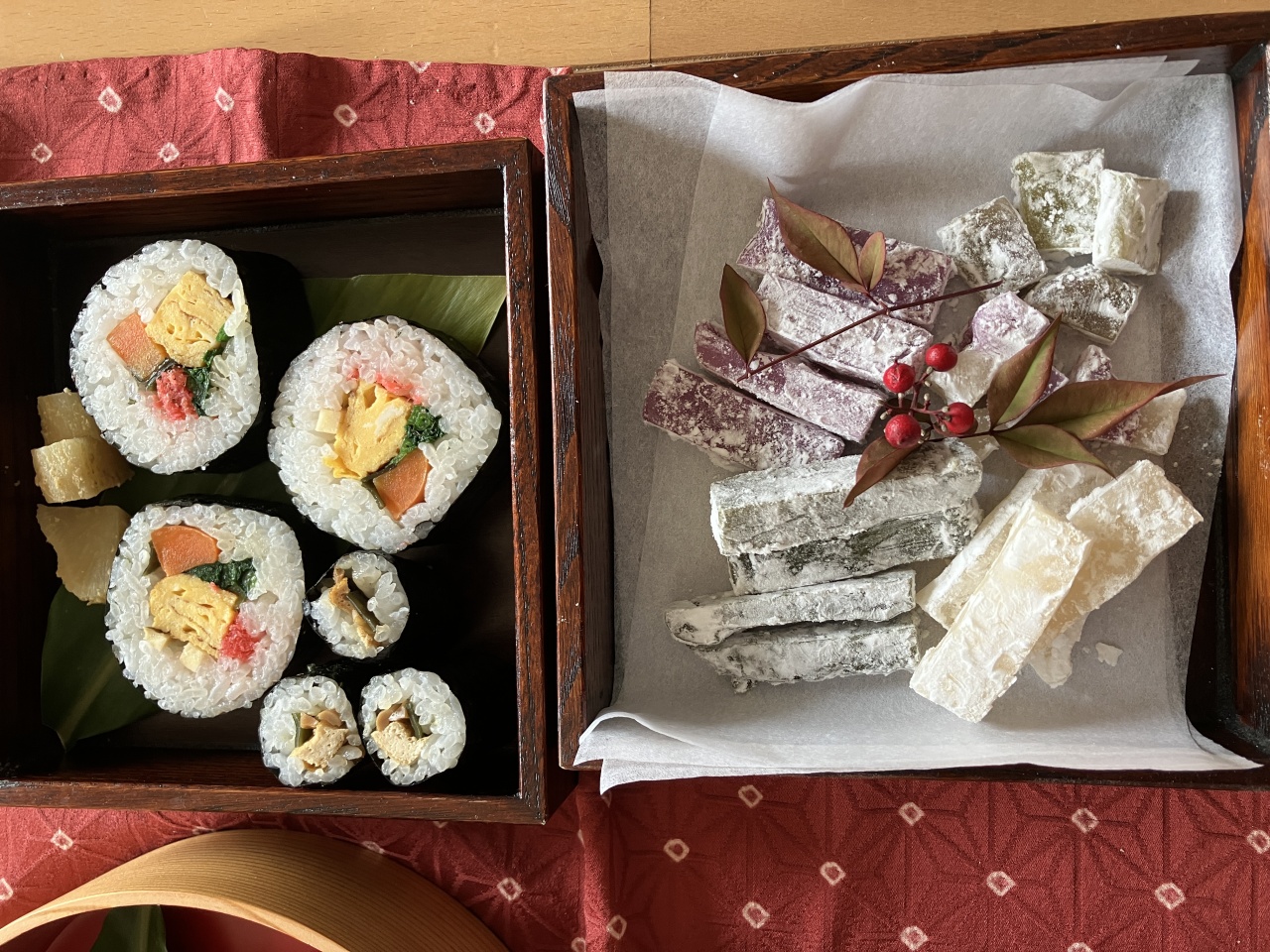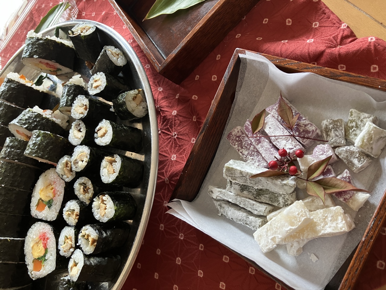 お正月休み以来、昨日から今日にかけて初めて連休を取ることが出来ました。私にとっては一足遅い節分と立春。特別な祈りを込めて太巻きと細巻きを巻き、初めて”切り山椒”なるものを作ってみました。題して「おごたま節分料理」。