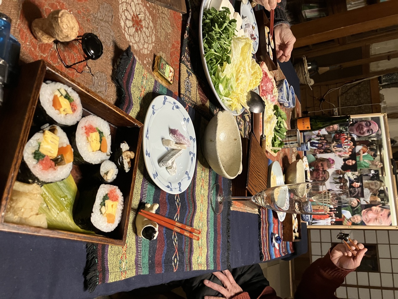 粛々と執り行われ、晴れて食卓へと移動。「山々とその仲間達のコラージュ写真」を皆で眺めながら、「山本先生は皆からも愛された人だったよね」と山下ご夫妻。