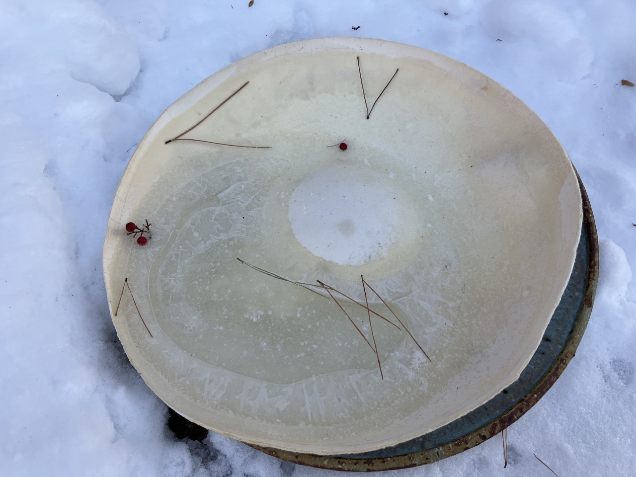 ジャスト日の入り♪ しばしオレンジモーメントの素晴らしい時間、1月のピアノのお復習いを。 これが昨晩から朝にかけて仕込んだ氷。帰り道の道中は保冷剤に。そして最後ビールクーラーに♪