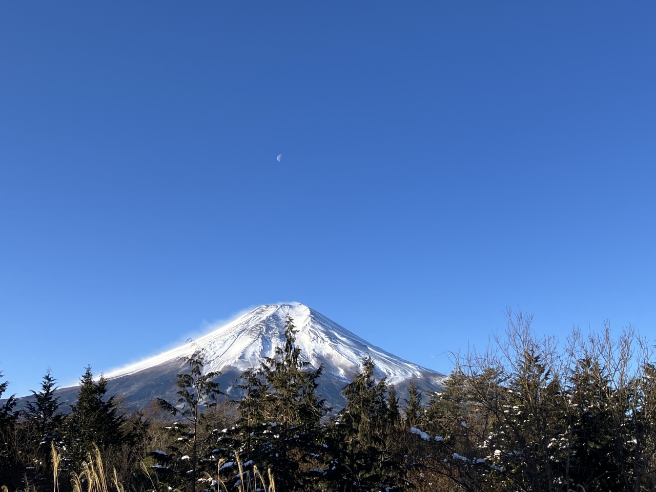 そしていざ忍野へ。富士山へと車を走らせました。御坂道辺りで雪が深くなり、白銀の世界。御坂トンネルを越えると、神々しいまでの真白の富士山が夕暮れに浮かび上がっていました。長い下り坂は積雪のため、皆が低速で走っており、絶好の幸い、しばし息を飲みながら見惚れることが出来ました。
