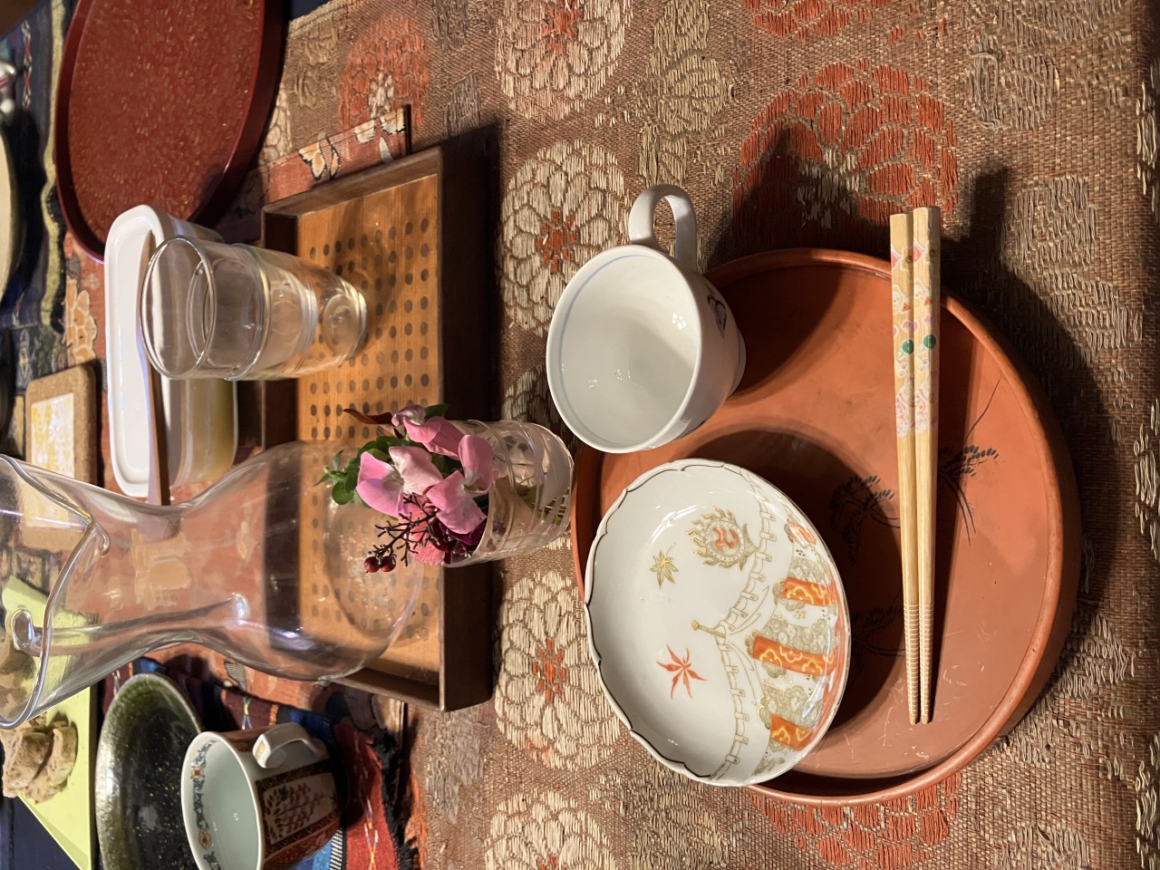 食前には、ご本堂に初めて座り、善さんにお経を上げていただきました。彼が生前宝物にしていた「山々とその仲間達のコラージュ写真(フェリシティ作)」が遺影となり、善さんが彼を弔うお経を上げている・・・、まさかこんな日が来るなんて・・・。